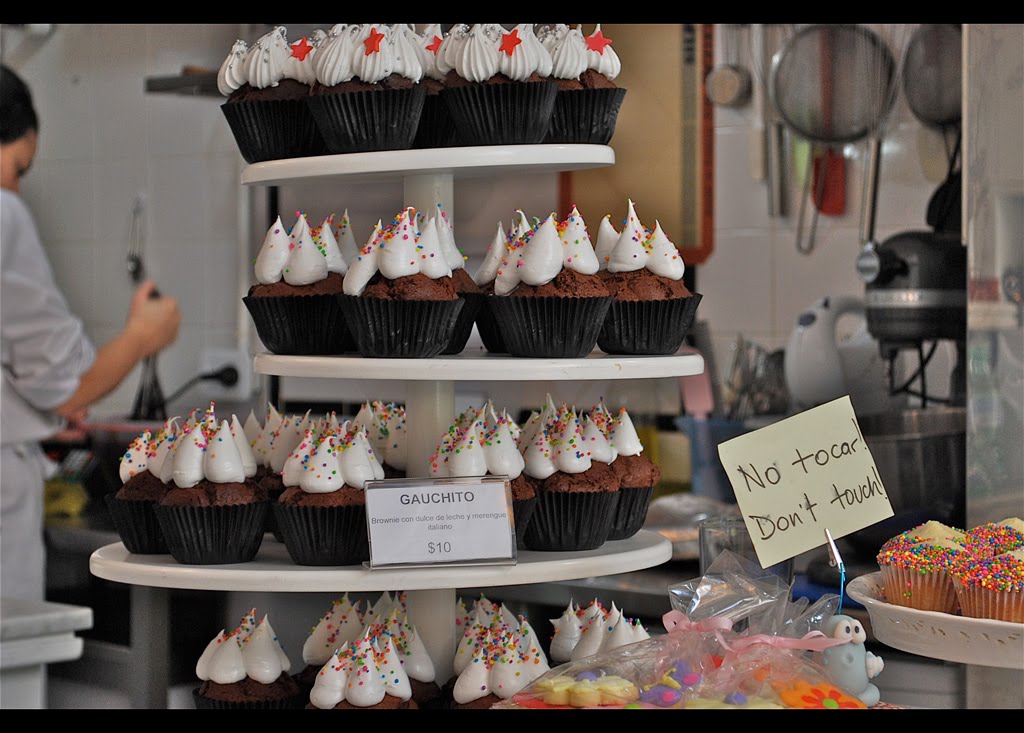 Depois de muitos dias de ansiedade, hoje finalmente matei minha curiosidade em conhecer e provar os "maravillosos cupcakes" da Muma's Cupcakes! Deliciosos! O ambiente é pequeno e intimista, a decoração é linda e achei os cupcakes muito gostosos mesmo, melhores que os da Magnolia! E a própria chef nos disse que muitos dizem a mesma coisa...pudera, são mesmo muito saborosos! Experimentei Red Velvet, Lemon Pie, Naranja e Manzana ..... ; D ... ainda faltam alguns sabores, mas eu farei o sacrifício em nome do trabalho, claro!!! \o/